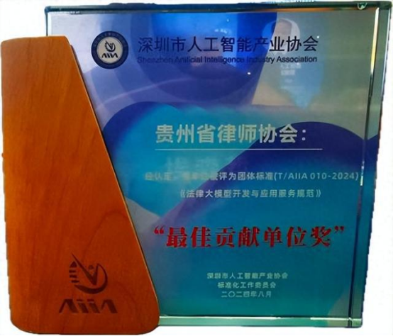 貴州省律師協(xié)會(huì)大數(shù)據(jù)和信息化專(zhuān)業(yè)委員會(huì)主任李緒誠(chéng)律師作為主要起草人,參與國(guó)內(nèi)首個(gè)法律大模型團(tuán)體標(biāo)準(zhǔn)T/AIIA 010-2024《法律大模型開(kāi)發(fā)與應(yīng)用服務(wù)規(guī)范》編制。該標(biāo)準(zhǔn)于2024年8月發(fā)布,推動(dòng)法律人工智能服務(wù)規(guī)范化、高效化。貴州省律師協(xié)會(huì)獲評(píng)“最佳貢獻(xiàn)單位獎(jiǎng)”,彰顯其在法律科技領(lǐng)域的引領(lǐng)力。