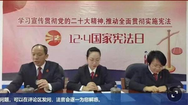 直播互動(dòng),深入服務(wù)群眾。為充分發(fā)揮新媒體傳播快、關(guān)注度高、互動(dòng)性好的特點(diǎn),黔南中院在新媒體平臺(tái)進(jìn)行庭審直播,讓群眾在觀看直播中學(xué)習(xí)法律知識(shí),截至目前,通過直播庭審方式普法已達(dá)4億人次;連續(xù)兩年,在國(guó)家憲法日宣傳中,邀請(qǐng)法官走進(jìn)直播間釋法、解答群眾法律咨詢,近20萬人次在線觀看。