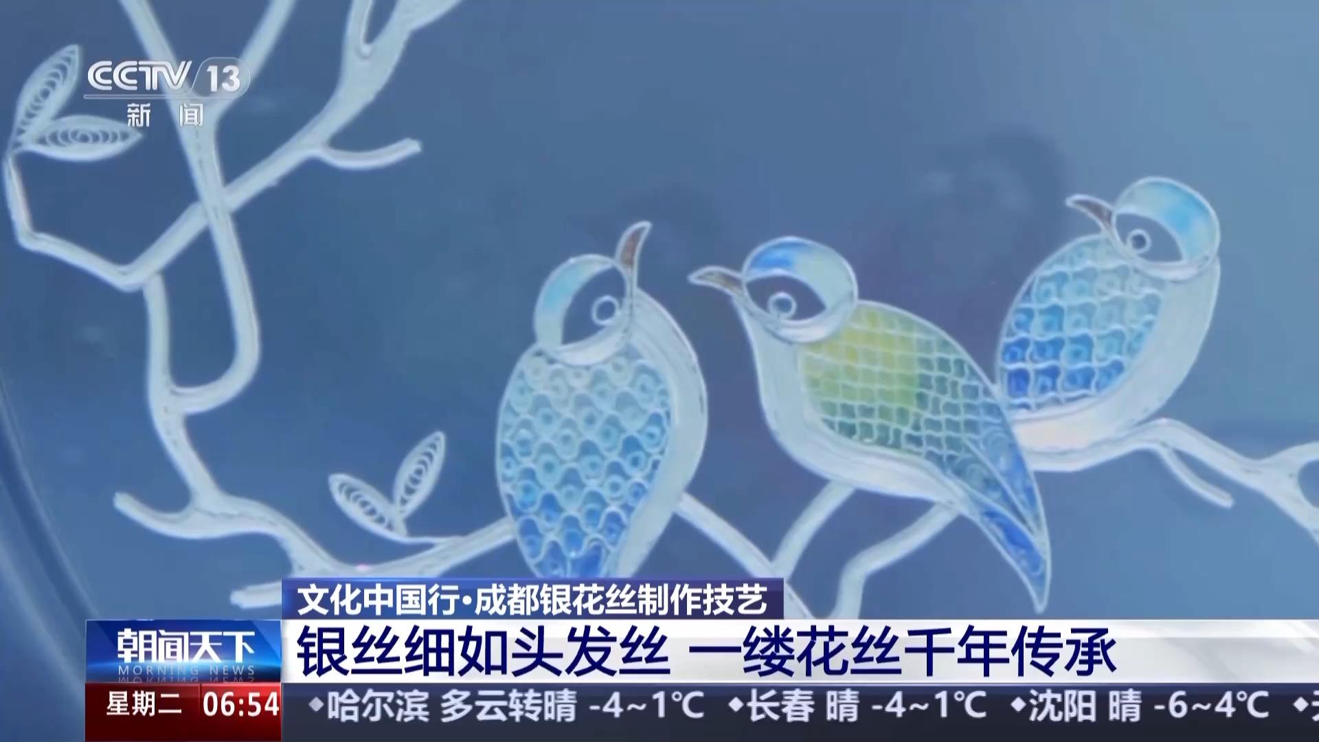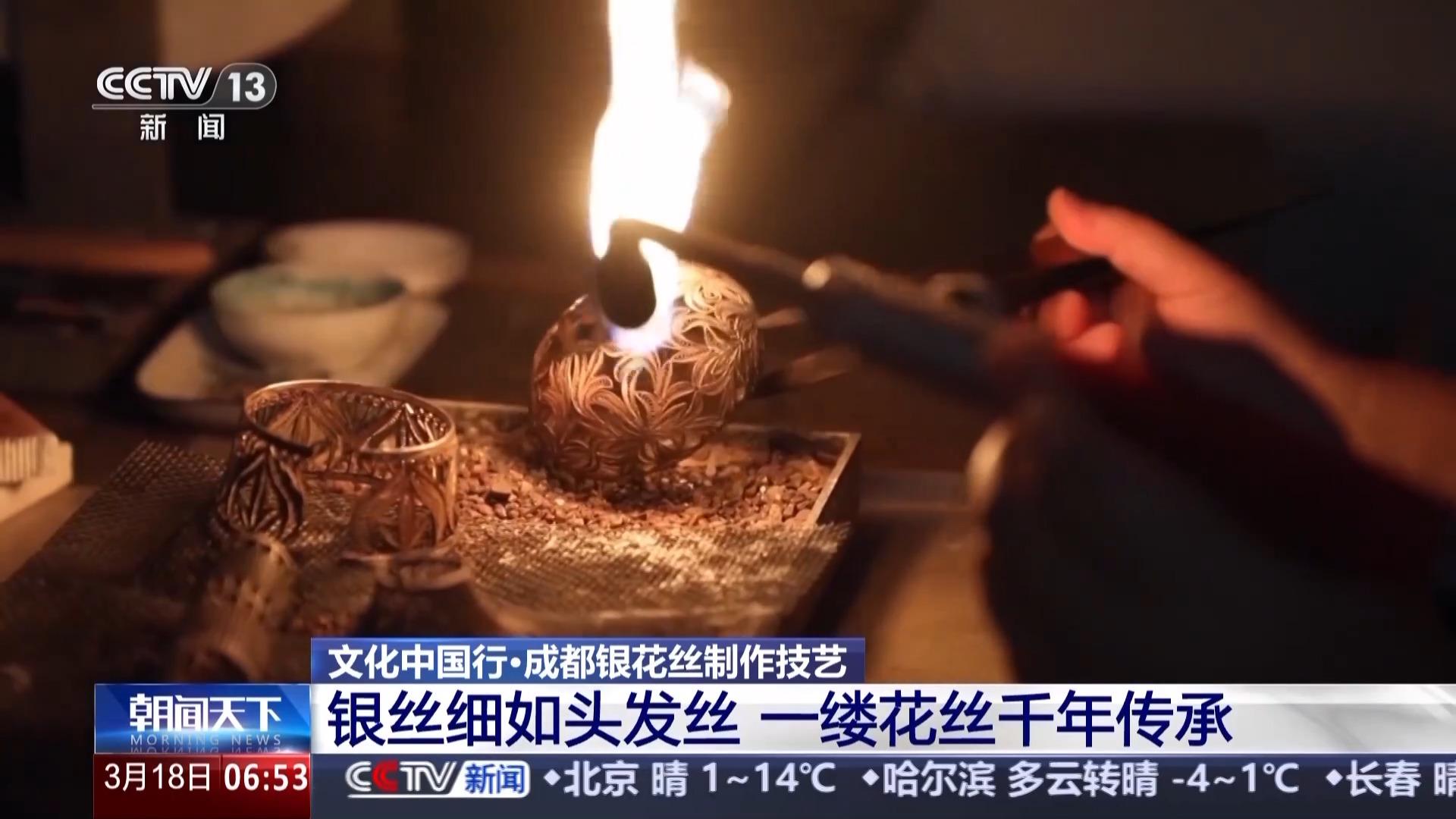 一把鑷子、一把剪刀、一塊耐火石棉板,粗細不等的銀絲,這樣一些看似簡單的工具和材料,經(jīng)過銀花絲技藝傳承人的妙手,便可成就出一件件光彩奪目的銀花絲作品。今天的《文化中國行》,讓我們一起了解成都銀花絲。
