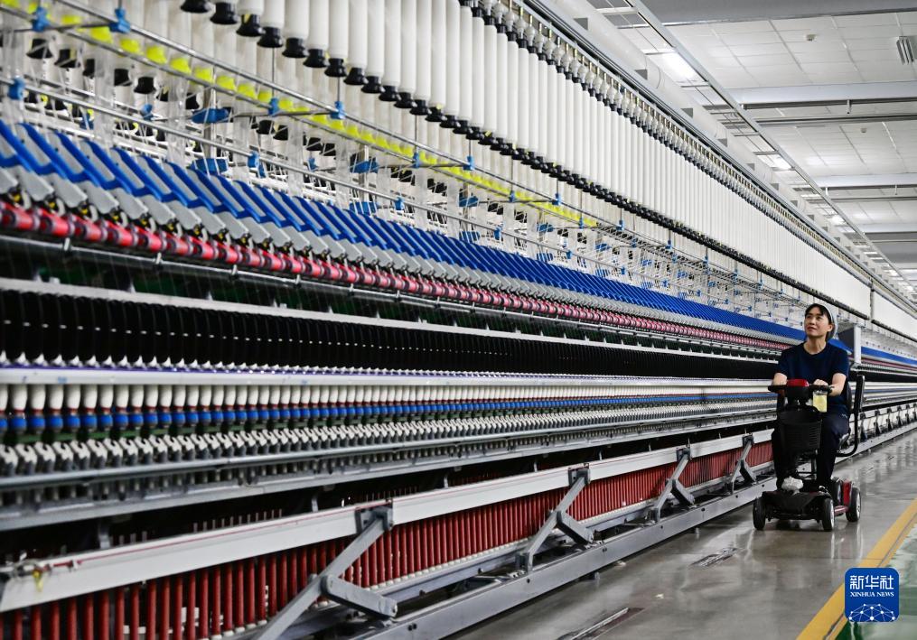 ??即墨區(qū)一家智慧紡紗企業(yè)的職工駕駛代步車巡檢自動(dòng)化超長(zhǎng)細(xì)紗生產(chǎn)線(3月25日攝)。
