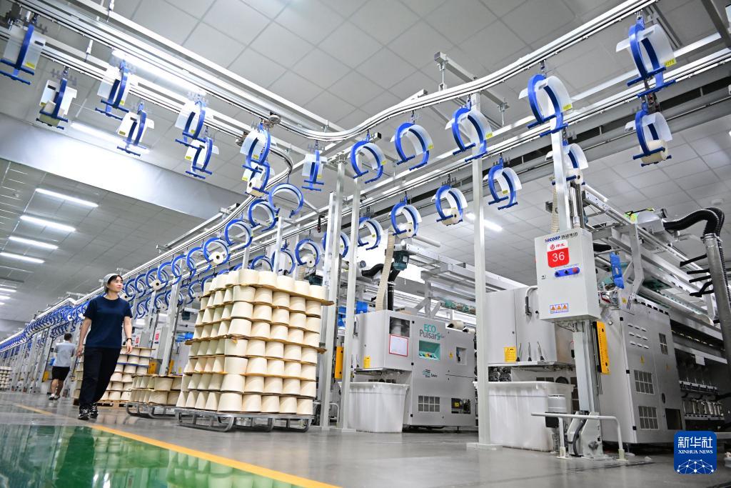 ??在即墨區(qū)一家智慧紡紗企業(yè),新安裝的自動化吊運傳送設(shè)備在試運行(3月25日攝)。