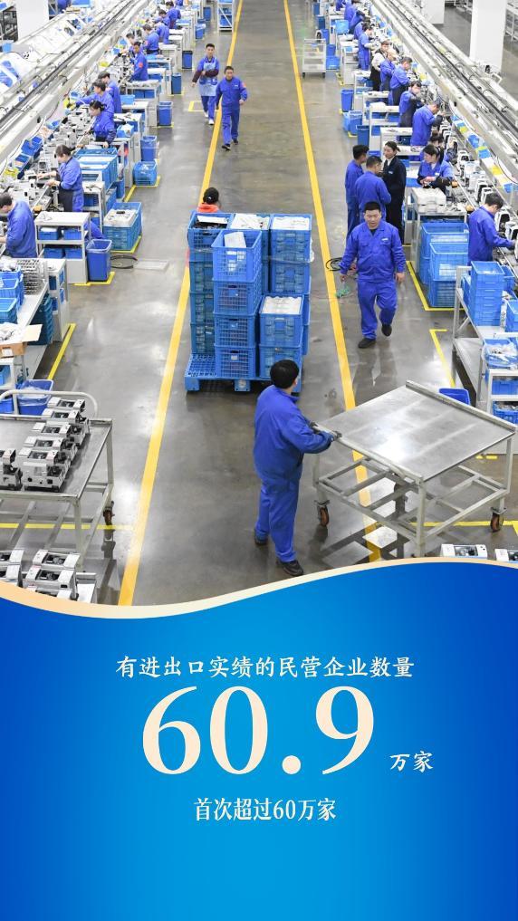 有進(jìn)出口實(shí)績的民營企業(yè)數(shù)量首次超過60萬家,達(dá)到60.9萬家,持續(xù)為外貿(mào)發(fā)展注入新生力量。