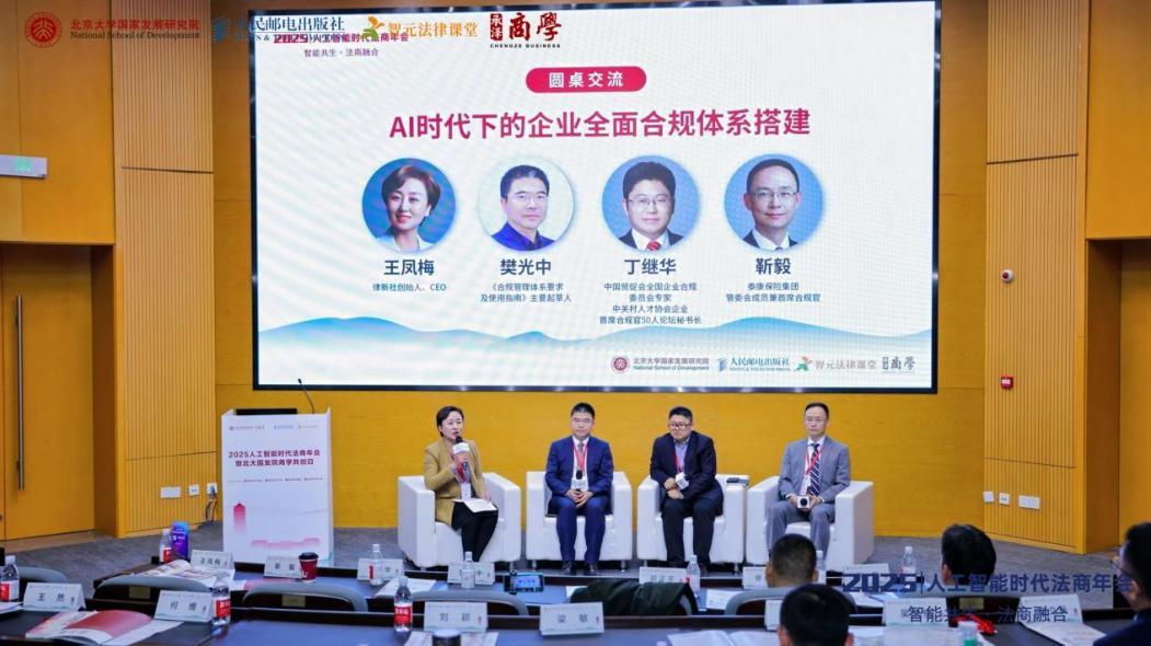 圓桌交流2:AI時(shí)代下的企業(yè)全面合規(guī)體系搭建——(左起)王鳳梅、樊光中、丁繼華、靳毅