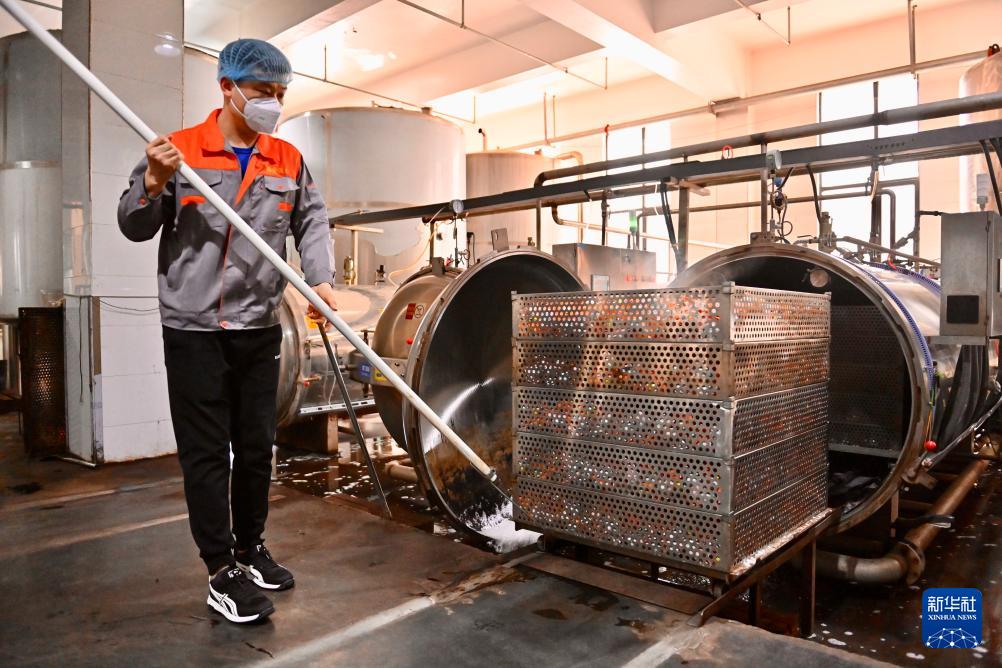 4月24日,在位于遼陽(yáng)市的遼寧鑫金科技實(shí)業(yè)集團(tuán)有限公司的加工廠內(nèi),工人在查看煮熟的鴨蛋。