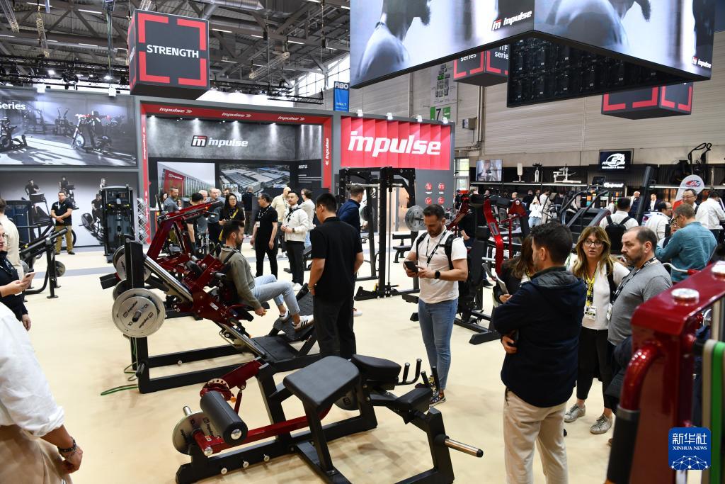 參觀者在2025年德國(guó)科隆健身健美及康體設(shè)施博覽會(huì)英派斯展位上體驗(yàn)(4月10日攝)。
