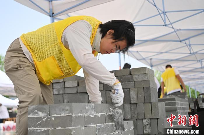 5月22日,西北四省(區(qū))文物保護(hù)工匠技能競賽暨甘肅省第一屆文物行業(yè)職業(yè)技能競賽在甘肅蘭州舉行。圖為參賽選手張肇軒進(jìn)行泥瓦作文物修復(fù)競賽項(xiàng)目。九美旦增 攝
