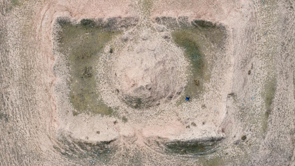 5月12日,李世翔在海原縣甯韋堡巡查(無人機(jī)照片)。