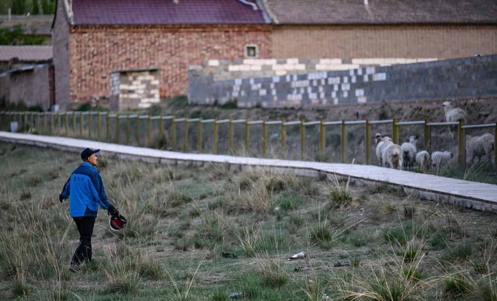 5月11日,李世翔將誤入柳州城址的羊群趕出防護(hù)欄。