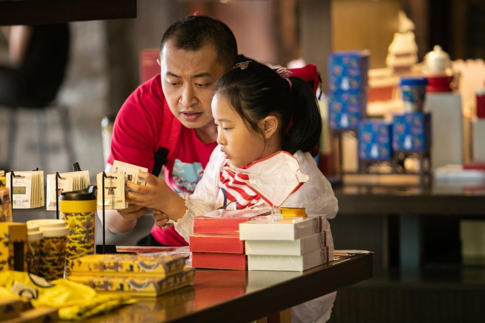 在重慶故宮文物南遷紀(jì)念館的角樓咖啡店,顧客在選購文創(chuàng)產(chǎn)品。新華社記者 儲加音 攝