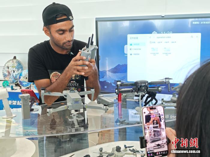 8月26日,在中國(guó)(鄂州)跨境電商產(chǎn)業(yè)園的直播中心,來自巴基斯坦的洋主播“阿布”正在TikTok直播間向北美消費(fèi)者推薦無人機(jī)。史元豐 攝