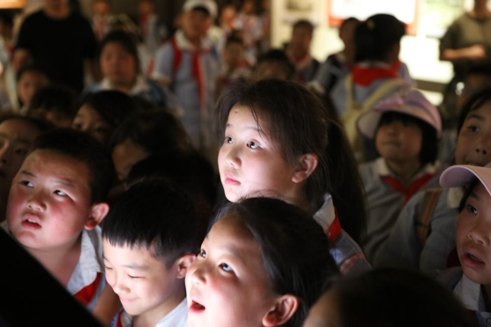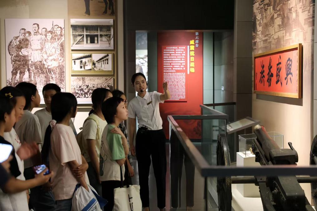學(xué)生們在賀龍紀念館聽講解員講述紅色歷史。新華社發(fā)
