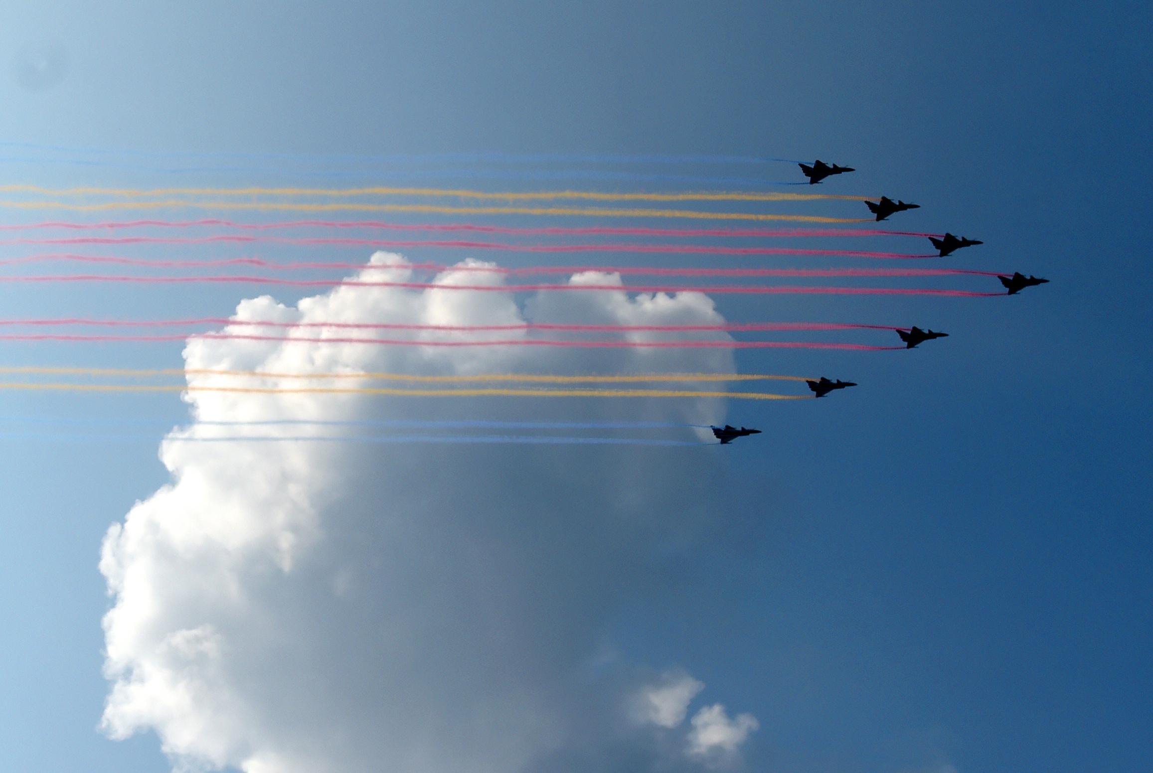 由80面抗戰(zhàn)英模部隊榮譽(yù)旗幟組成的戰(zhàn)旗方隊接受檢閱。