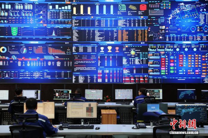 9月8日,在位于新疆烏魯木齊的八一鋼鐵集團(tuán)有限公司(簡稱八鋼),工作人員在管控中心監(jiān)測各項數(shù)據(jù)。中新社記者 王紫儒 攝