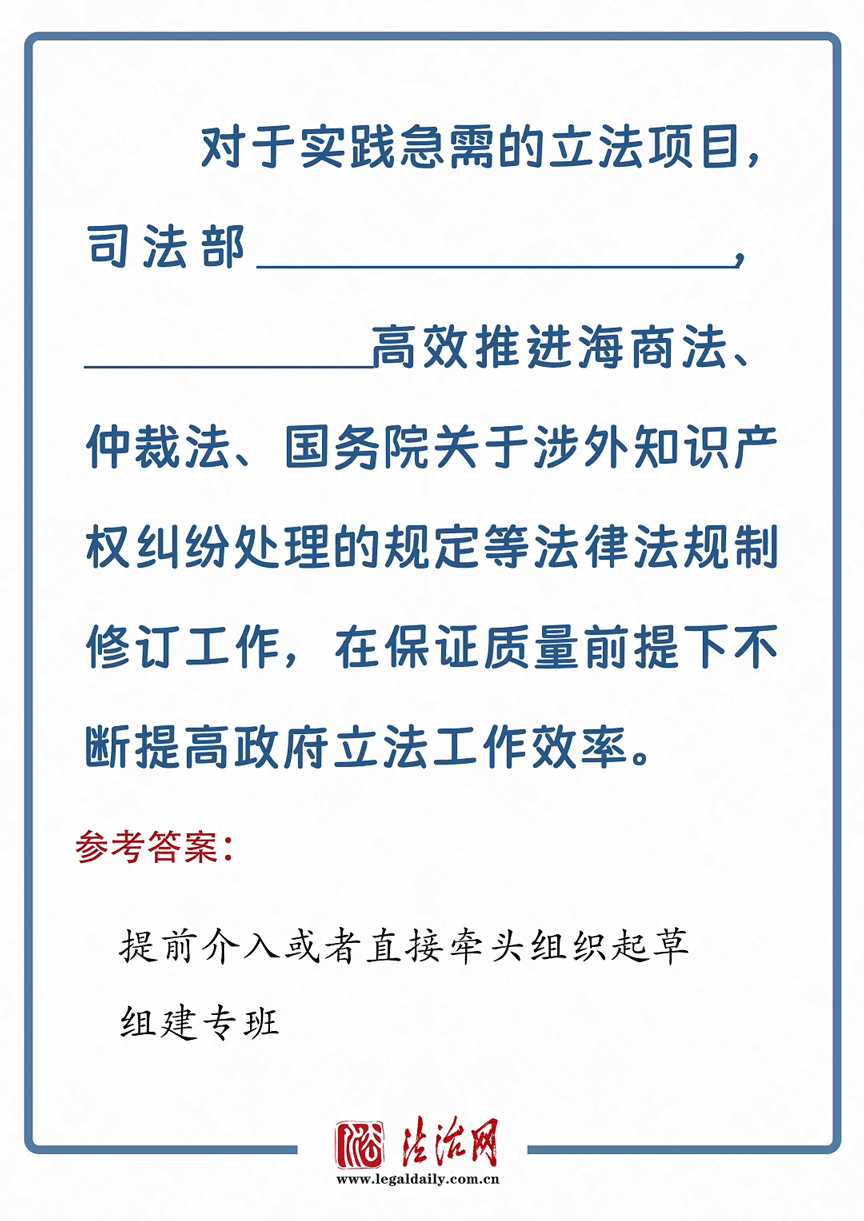 政府立法是國家立法的重要組成部分。作為國務(wù)院法制機(jī)構(gòu),司法部堅持圍繞中心、服務(wù)大局,充分發(fā)揮政府立法起草、審查和立法監(jiān)督等職能作用,不斷推進(jìn)政府立法工作提質(zhì)增效。政府立法,這些領(lǐng)域有“必答題”,一起來看!
