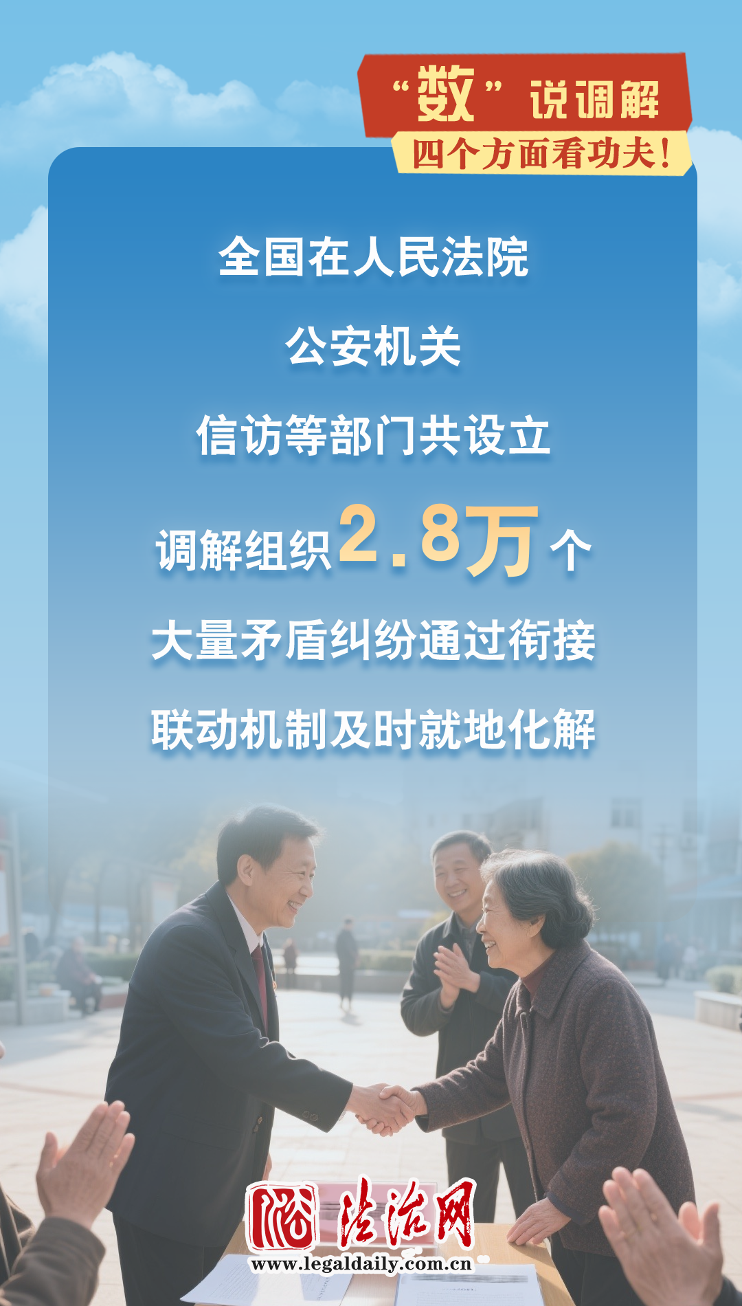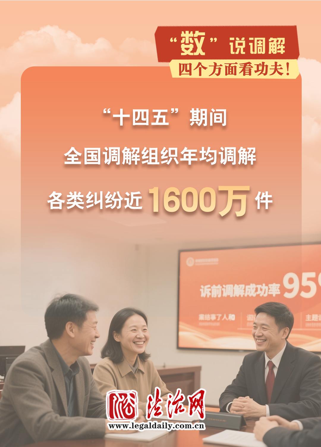 “十四五”期間,司法部堅持和發(fā)展新時代“楓橋經驗”,充分發(fā)揮調解的職能作用,在機制全、領域廣、隊伍強、效果實四個方面下功夫,大力加強矛盾糾紛的排查化解,切實保障群眾合法權益,維護社會和諧穩(wěn)定。
