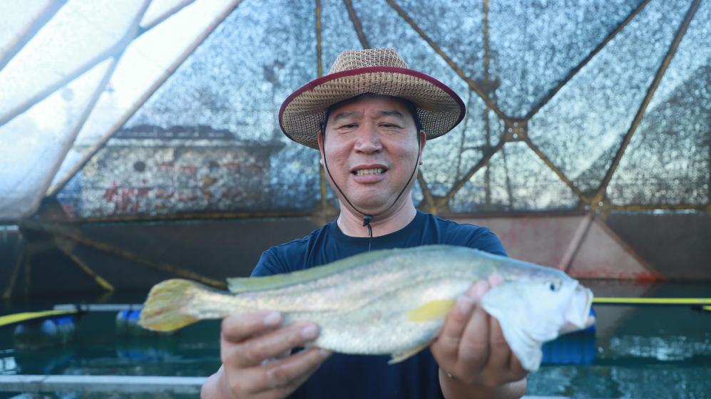 “深遠(yuǎn)海養(yǎng)出來的魚,肉質(zhì)緊實。兩斤左右這一條魚,一般正常的話我們拿出去賣一斤要一百來塊,兩斤左右要賣兩三百塊?!北R統(tǒng)鋒說。