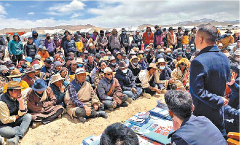 圖片說明:針對辦案中發(fā)現的問題,改則縣檢察院干警深入牧區(qū),通過發(fā)放宣傳資料、現場講解野生動物保護法律知識的方式,提升牧民的法治意識,在全社會形成自覺保護野生動物的良好氛圍。(改則縣檢察院供圖)