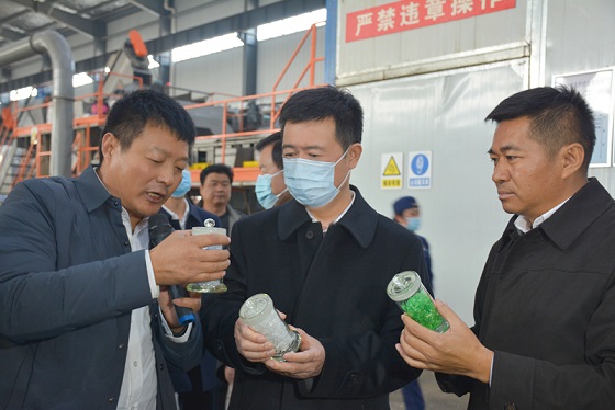 郭青實(shí)地察看了咸陽智慧新能源和資源綜合利用項(xiàng)目、陜西東方俊輝環(huán)保包裝生產(chǎn)線項(xiàng)目、陜西東方環(huán)保產(chǎn)業(yè)集團(tuán)保發(fā)塑料有限公司年產(chǎn)3萬噸PET瓶片清洗生產(chǎn)項(xiàng)目等,詳細(xì)了解項(xiàng)目建設(shè)進(jìn)展、企業(yè)生產(chǎn)經(jīng)營及存在的困難問題。