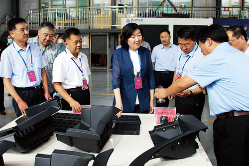 圖為視察組在臨朐縣大地汽車零部件有限公司年產(chǎn)30萬(wàn)套長(zhǎng)玻纖以塑代鋼塑料件項(xiàng)目現(xiàn)場(chǎng)實(shí)地察看。 王剛 攝