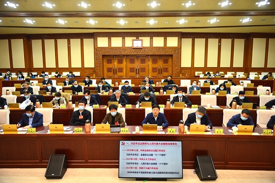 王良在主持時指出,習近平法治思想是順應(yīng)實現(xiàn)中華民族偉大復興時代要求應(yīng)運而生的重大理論創(chuàng)新成果,是馬克思主義法治理論中國化最新成果,是習近平新時代中國特色社會主義思想的重要組成部分,是全面依法治國的根本遵循和行動指南。要在深入學習貫徹習近平法治思想上下功夫求實效,與深入學習貫徹黨的十九屆六中全會精神結(jié)合起來,與深入學習貫徹習近平總書記關(guān)于堅持和完善人民代表大會制度的重要思想和中央人大工作會議精神結(jié)合起來,與深入學習貫徹習近平總書記對山東重要指示要求結(jié)合起來,與全面貫徹落實省委十一屆十四次全體會議精神結(jié)合起來,堅持黨對人大工作的全面領(lǐng)導,不斷提高政治判斷力、政治領(lǐng)悟力、政治執(zhí)行力。要切實把學習成效轉(zhuǎn)化為做好人大工作的實際行動,在知行合一中擔當作為,以強烈的責任感使命感扎實做好立法、監(jiān)督、普法宣傳等各項工作,努力為法治山東建設(shè)作出人大貢獻。