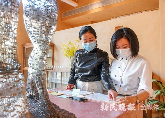 圖說(shuō):王芳在和同事交流工作。新民晚報(bào)記者 陶磊 攝(下同)