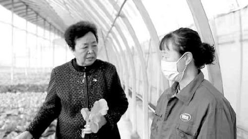 王銀香(左)在有機蔬菜大棚向農(nóng)戶講授農(nóng)技知識