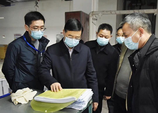 1月12日,重慶市人大常委會秘書長、辦公廳主任周少政率檢查組,檢查人代會文件印刷廠工作情況。記者 楊波 廖燦勇 攝