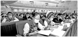1月20日,云南省十三屆人大五次會議在昆明開幕。圖為代表們認真聽取云南省政府工作報告。 CFP供圖