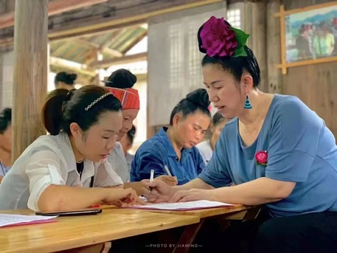 2013年,楊再美創(chuàng)立了臺江縣恒藝苗族文化藝術(shù)專業(yè)合作社,通過產(chǎn)品加工、“陽光計劃”、“蒲公英計劃”、“雨露計劃”、“錦繡計劃”、“非遺傳承”等培訓,傳承技藝,搭建橋梁,受益婦女達30000余人次,不僅精進了繡娘的技藝,更多地給她們樹立了脫貧致富的信心。