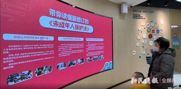 圖說:祖孫二人在申城首家未成年人保護站參觀(視頻截圖)。劉歆 攝