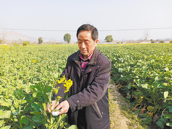 王能干在田間查看油菜長(zhǎng)勢(shì)。(受訪者供圖)