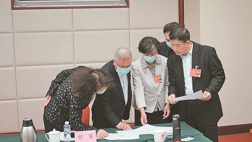 3月9日,臺盟界委員在小組討論會場內(nèi)外,同樣認(rèn)真,勤勉履職。