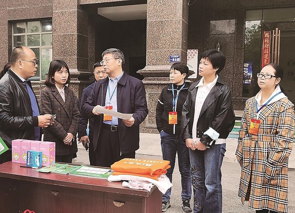 日前,貴陽市云巖區(qū)政協(xié)專項(xiàng)視察調(diào)研組到鹽務(wù)街街道辦事處,了解社區(qū)生活垃圾分類處置現(xiàn)狀并形成專題調(diào)研視察報(bào)告送區(qū)委、區(qū)政府領(lǐng)導(dǎo)決策參考。圖為區(qū)政協(xié)主席張洪聽取工作人員介紹,現(xiàn)場隨機(jī)抽查居民如何區(qū)分和投放干濕垃圾。 徐陽澤 攝