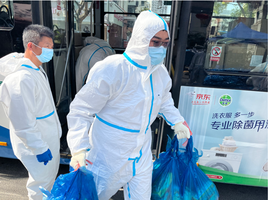近日,上海市浦東新區(qū)啟用首批“公交送菜專線”,15輛公交車為沿線20個盒馬配送點運送民生物資,服務封控區(qū)內上千戶居民。一個來回,公交車能裝載300份蔬菜包,運送能力是一般電瓶車和平板車的20倍。