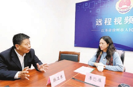 李甦雁(右)和徐州市檢察院副檢察長(zhǎng)韓衛(wèi)東交流檢察工作。