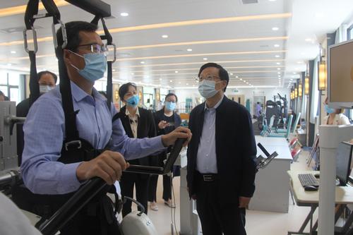 日前,根據(jù)河南省委辦公廳、省政府辦公廳印發(fā)的《2022年省領(lǐng)導(dǎo)同志牽頭推進(jìn)重點(diǎn)項(xiàng)目建設(shè)工作方案》及助推“健康中原”建設(shè),全國(guó)政協(xié)常委、河南省政協(xié)副主席高體健帶領(lǐng)委員到河南中醫(yī)藥大學(xué)第一附屬醫(yī)院實(shí)地調(diào)研重點(diǎn)項(xiàng)目及省老干部康復(fù)醫(yī)院建設(shè)情況。圖為調(diào)研組在河南省老干部康復(fù)醫(yī)院現(xiàn)代康復(fù)治療中心與患者親切交流。王有強(qiáng) 張志彬 攝