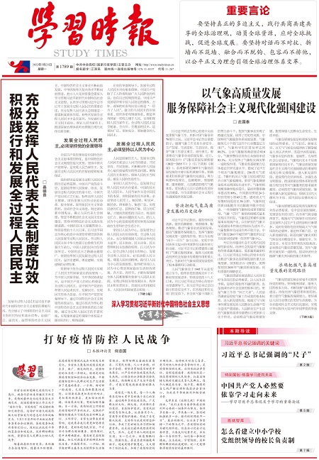 原標(biāo)題:《學(xué)習(xí)時(shí)報(bào)》頭版頭條刊發(fā)慕德貴署名文章:積極踐行和發(fā)展全過(guò)程人民民主 充分發(fā)揮人民代表大會(huì)制度功效