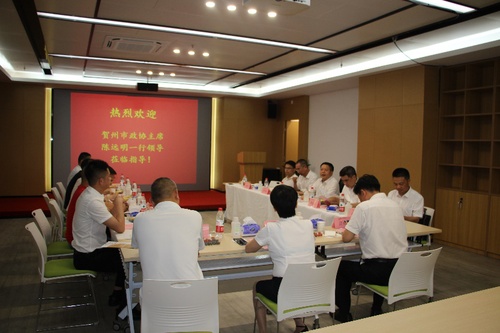 6月16日,廣西賀州市政協(xié)主席陳遠明一行走訪市政協(xié)委員、恒希建材董事長陳志海,聽取企業(yè)發(fā)展情況介紹。(廣西賀州市政協(xié)供圖)