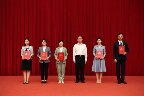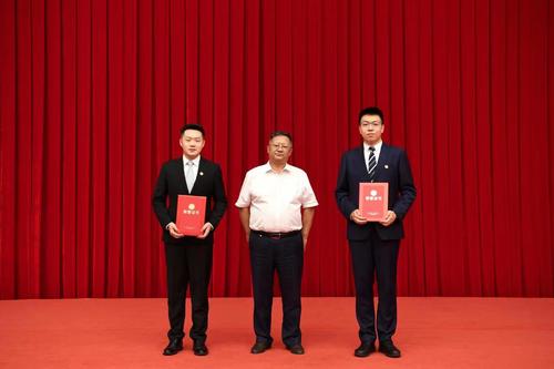 機(jī)關(guān)黨委常務(wù)副書記吳秀生、機(jī)關(guān)黨委副書記劉熙穎為三等獎獲得者頒獎(新聞局高宇翔 攝)
