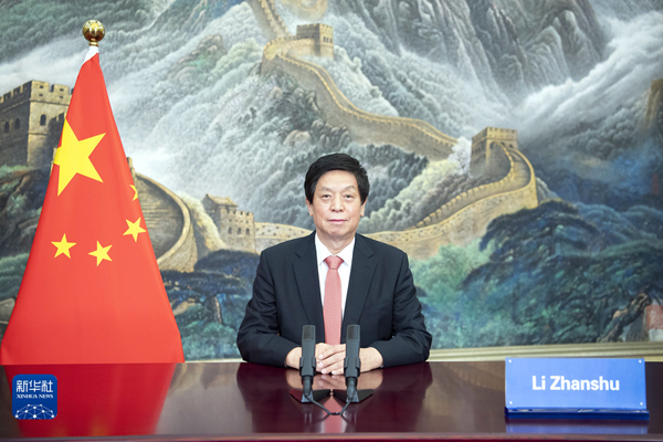 全國人大常委會委員長栗戰(zhàn)書27日應(yīng)邀在泰國國會成立90周年慶?;顒由习l(fā)表視頻致辭。