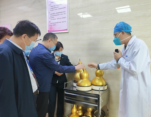 圖為中醫(yī)醫(yī)療機(jī)構(gòu)向委員們介紹特色理療“葫蘆針灸療法”。