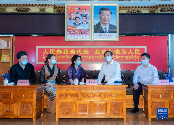 7月12日至15日,中共中央政治局常委、全國人大常委會委員長栗戰(zhàn)書在西藏就青藏高原生態(tài)保護立法進行調(diào)研。這是7月15日,栗戰(zhàn)書在拉薩城關(guān)區(qū)功德林街道,調(diào)研基層人大工作情況。新華社記者?翟健嵐?攝