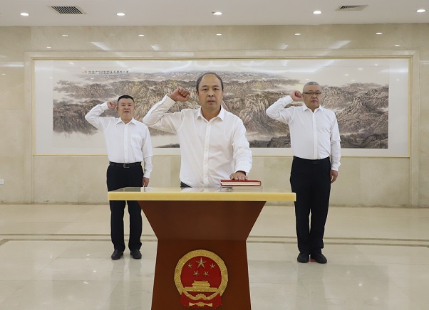 會(huì)后舉行憲法宣誓儀式,本次會(huì)議決定任命的省教育廳廳長(zhǎng)張國(guó)珍、省工業(yè)和信息化廳廳長(zhǎng)盛云峰、省審計(jì)廳廳長(zhǎng)郝文杰進(jìn)行了集體宣誓。