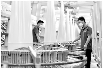 建設(shè)長(zhǎng)三角科技創(chuàng)新共同體對(duì)于整合區(qū)域創(chuàng)新資源、促進(jìn)區(qū)域協(xié)同創(chuàng)新、提升區(qū)域創(chuàng)新能力、推動(dòng)長(zhǎng)三角率先實(shí)現(xiàn)高質(zhì)量一體化發(fā)展、增強(qiáng)我國(guó)國(guó)際競(jìng)爭(zhēng)力具有重大戰(zhàn)略意義。圖為浙江湖州某科技公司工人在智能環(huán)保包裝流水線上作業(yè)。 CFP供圖
