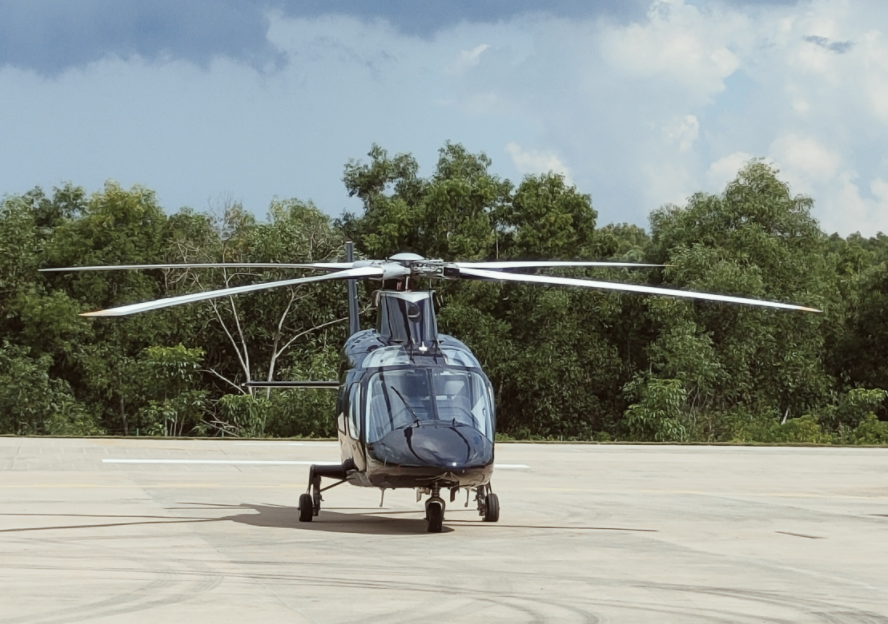8月18日下午,記者在??谑械慕鹆趾?诩鬃油ㄓ脵C場,看到一架從墨西哥購進(jìn)的AW109E直升機運抵此地,并完成安裝調(diào)試、交付運營。