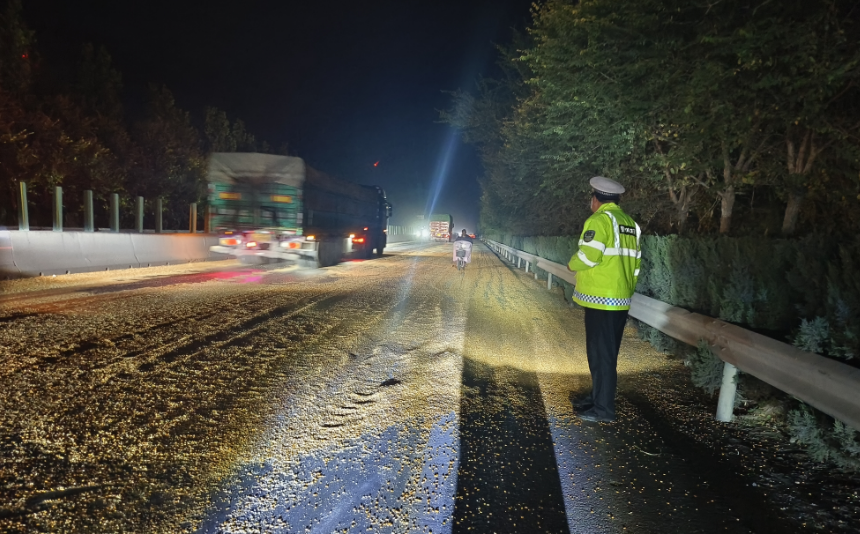 2024年11月4日晚,河南省鶴壁市淇縣交警大隊(duì)高村中隊(duì)況宏民班組在107國道巡邏時,忽然聽到有人呼喊:“不好!誰的玉米灑了?!?/span>