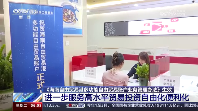 《海南自由貿(mào)易港多功能自由貿(mào)易賬戶業(yè)務(wù)管理辦法》生效 進一步服務(wù)高水平貿(mào)易投資自由化便利化