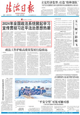 本報(bào)北京1月12日訊 記者蔡長春 全國政法系統(tǒng)堅(jiān)持不懈用習(xí)近平新時(shí)代中國特色社會(huì)主義思想凝心鑄魂,2024年以來,持續(xù)深入學(xué)習(xí)宣傳貫徹習(xí)近平新時(shí)代中國特色社會(huì)主義思想特別是習(xí)近平法治思想,掀起學(xué)習(xí)宣傳貫徹習(xí)近平法治思想熱潮。