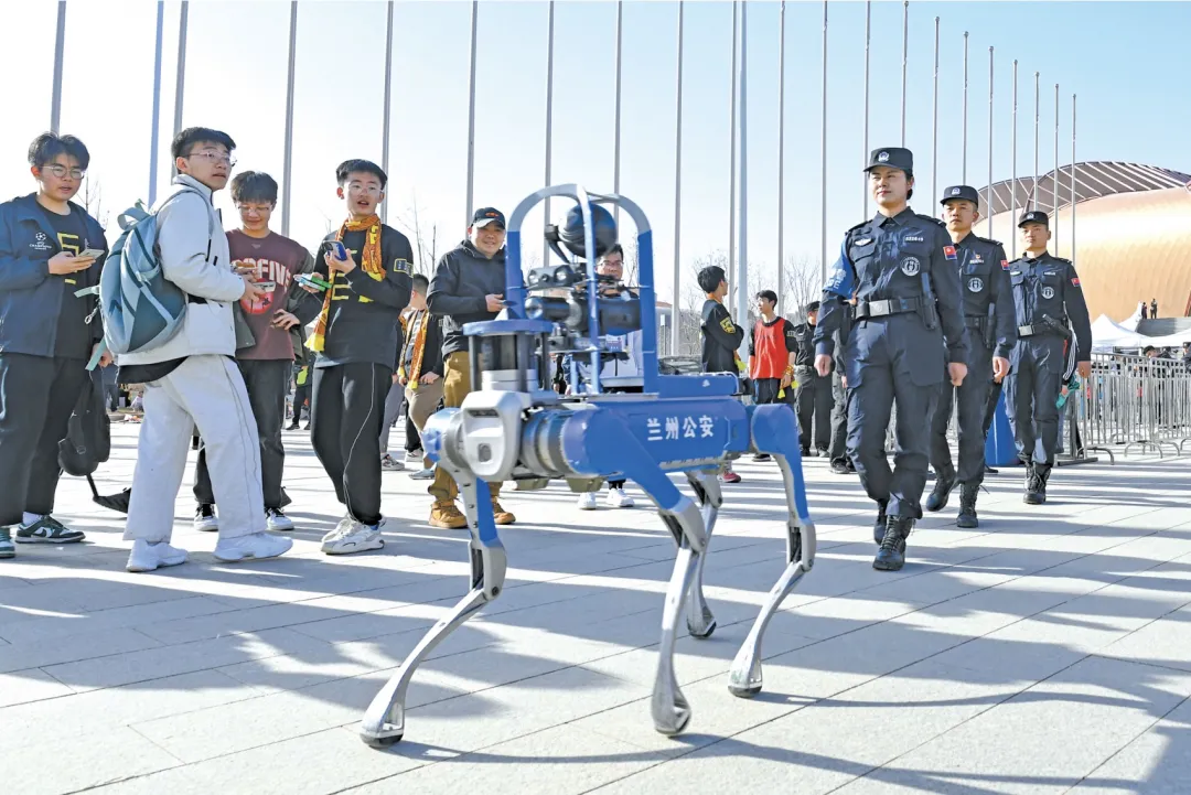 圖為蘭州公安“智犬”(機(jī)器狗)亮相賽事安保工作,成為地面巡邏的“智能尖兵”。 陳濤 攝