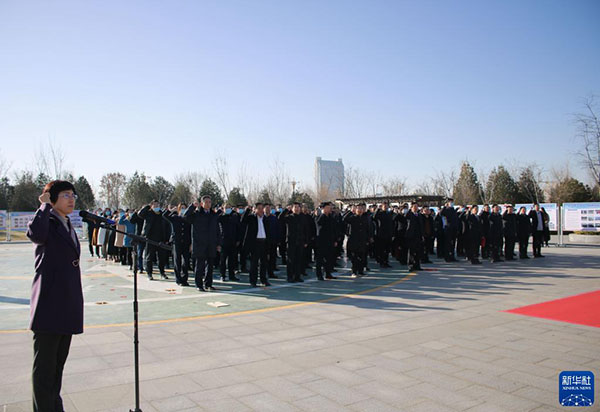 山東省濱州市舉行2021年國家憲法日領(lǐng)導(dǎo)干部憲法宣誓儀式(12月3日攝)。新華社發(fā)(劉偉 攝)